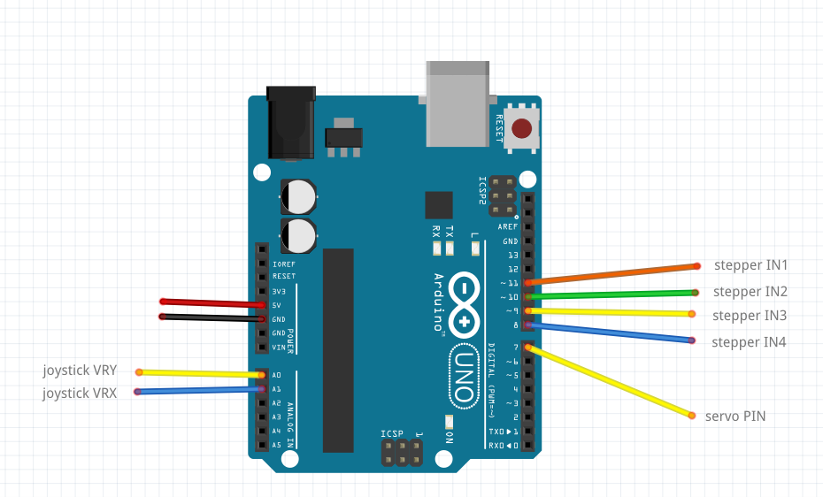조이스틱의 값을 read해서 스테핑모터와 서보모터에 키값을 전달하게 됩니다.