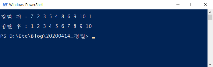 QuickSort(TargetArr, 0, 10);//정렬 함수 호출