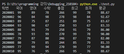 label = ["학번", "국어", "영어", "수학", "총점", "최고", "최저", "평균"]